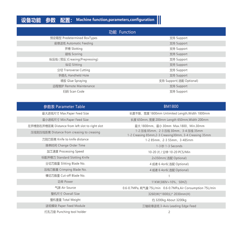 產品特點:1、全電腦操作快速换單。2 、可選1800mm或2500mm 門幅,無限進紙長度。3、A型箱异型箱開槽、壓线一次完成。可制作百種以上箱型...